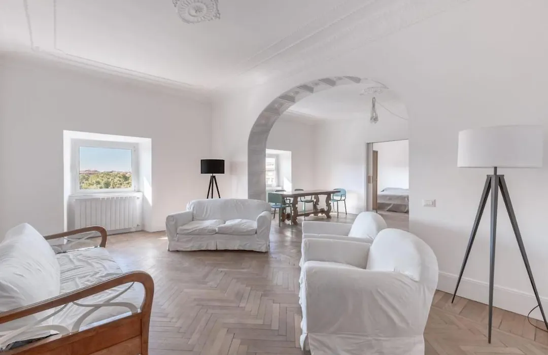The 2-room Vittorio Luxury Panoramic Apartment Rome welcomes travelers in the center of Rome, located approximately 25 minutes by foot from Palatine Hill.